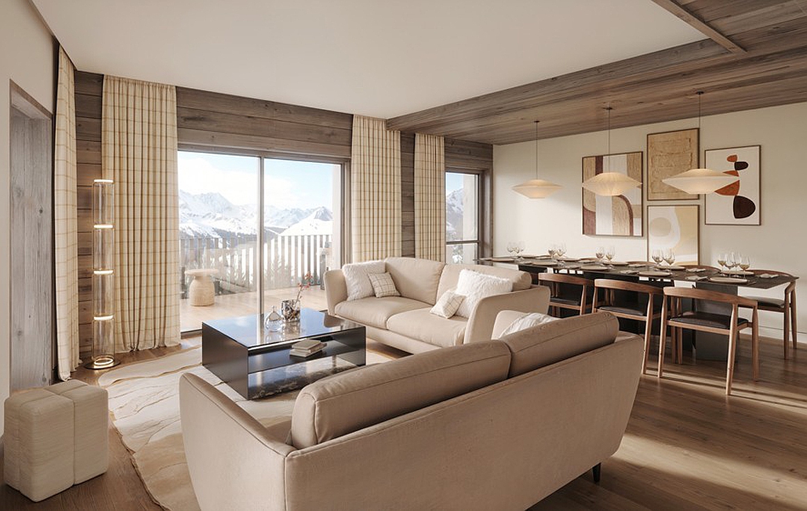 With apartments enjoying stunning views of the mountains or ski slopes and being built by a renowned developer of the Alps, the residence will blend with the contemporary architecture of the resort and will mix wood and stone in harmony with the white facades. To be delivered in December 2026 and centrally situated to access the local amenities, within the residence, owners will enjoy high end finishes in each property and access to the contemporary wellness area that includes swimming pool, sauna, hammam, jacuzzi and gym.