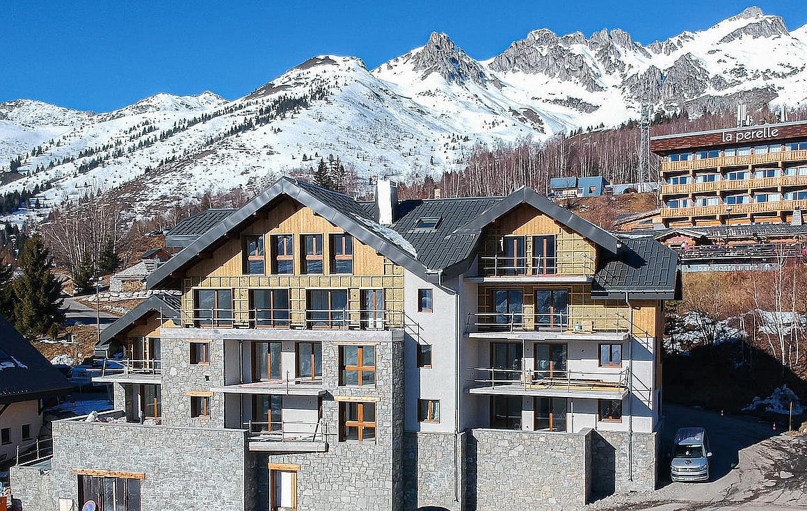 With the resort just 12km from the motorway making it easy to access and being built by a promoter with a proven track record of building in the mountains, the contemporary but yet traditional architecture of the residence that comes with a hint of Savoyard, will be built to RT2012 standards and will incorporate high standing materials including larch wood and local stone on the exterior as well as spacious wooden balconies.