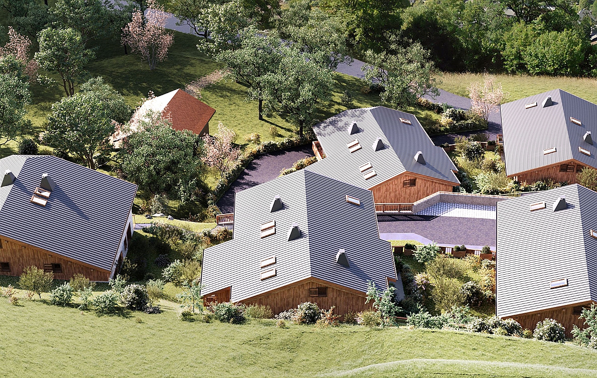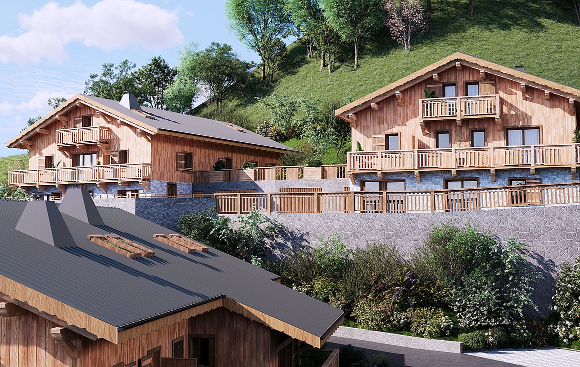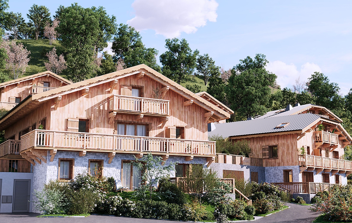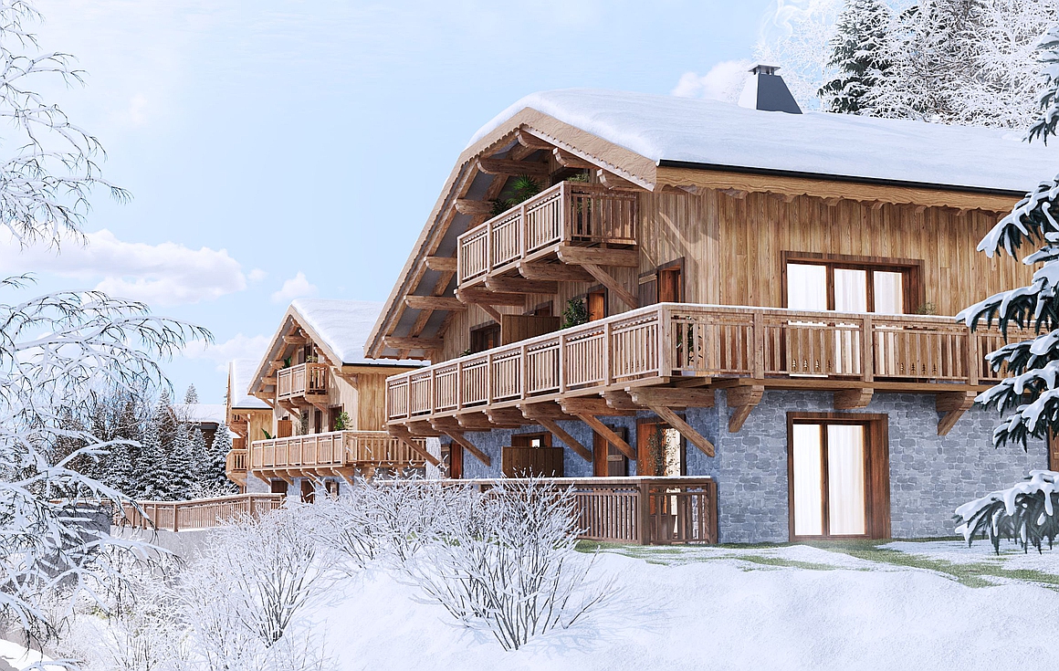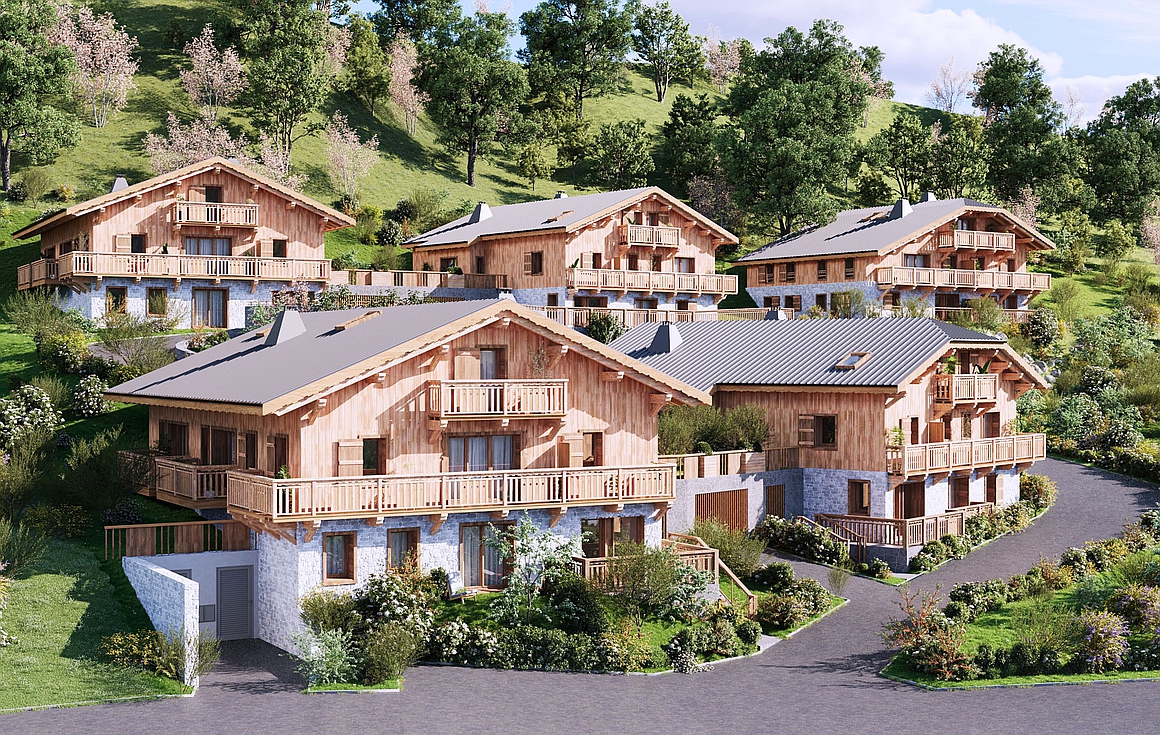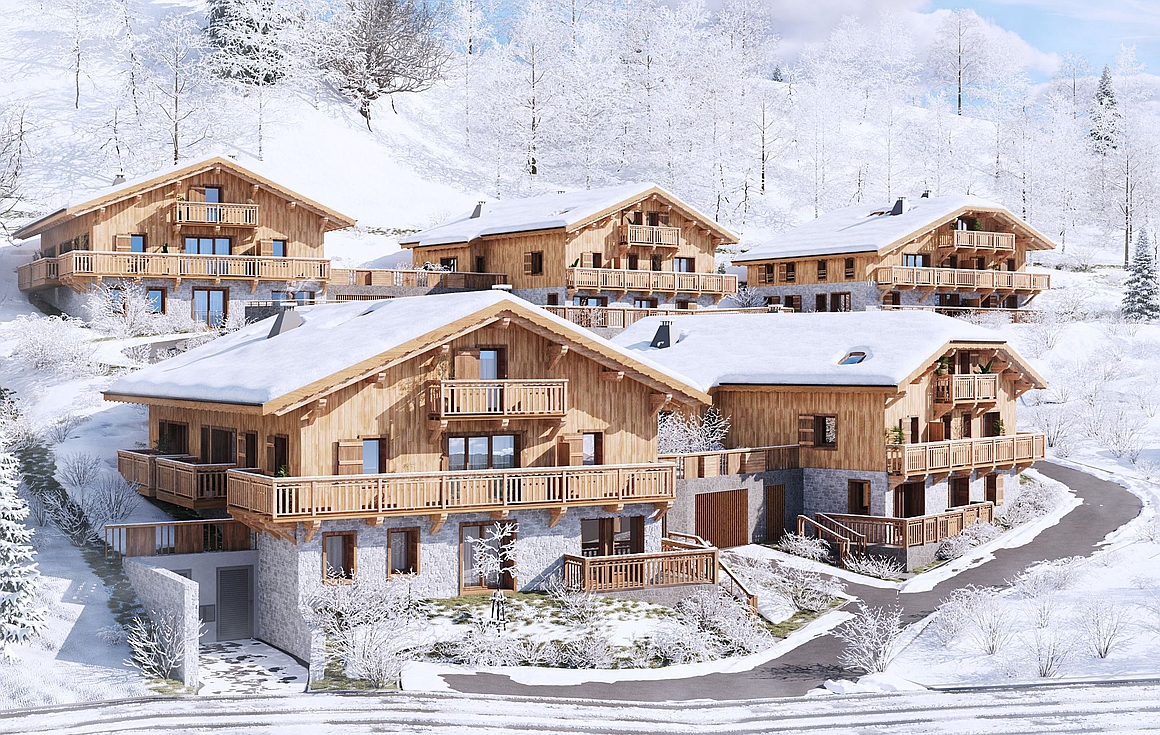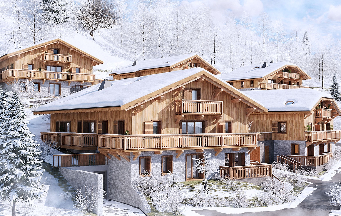 Enjoying traditional alpine architecture complete with slopes roofs, wood and stone facades, the programme will be completed for quarter 2 of 2028.