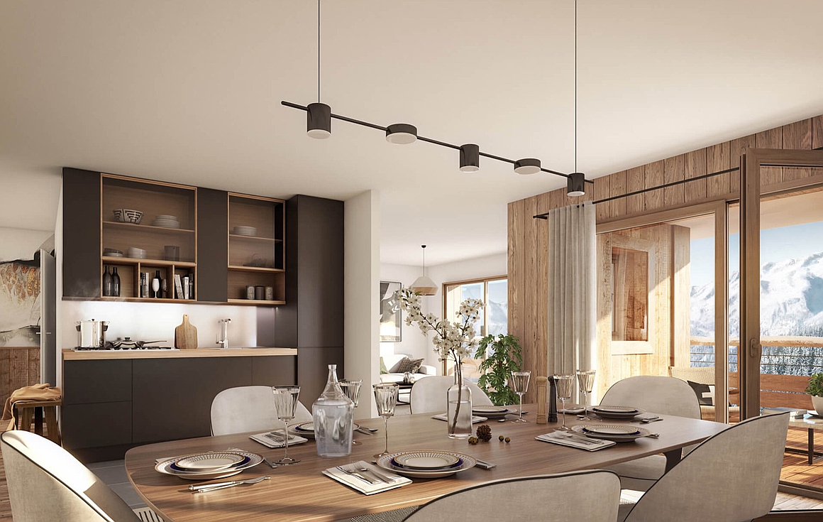 This outstanding 4 bedroom off plan ski in and out apartments each of 98m2 sit within this brand new residence of 23 apartments made up of 1 - 4 bedrooms is located in the heart of the Vieil Alpe area of the resort with all the shops and restaurants within steps of the entrance to the building. Arrive and depart on skis, the Alpe Express cable car is close by. Complete with a fitness centre for residents to use, apartments enjoy open views to the surrounding mountains.