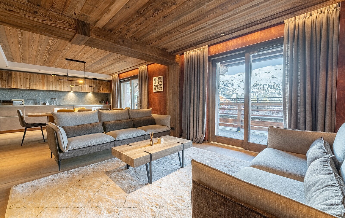 Discover this beautifully appointed 4 bedroom apartment, offering 160m2 of living space and a desirable west facing orientation. Located just 40 meters away from the ski slope, this exceptional property combines prime location with high end amenities, ideal for mountain lovers seeking both comfort and convenience. With generous volumes and thoughtfully designed interiors, it accommodates up to 10 guest in total, making it perfect families and ski holidays.