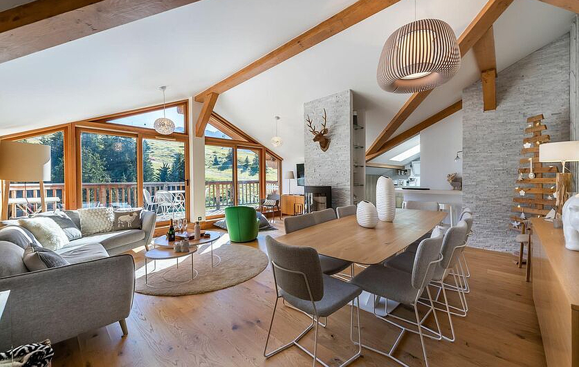 In the heart of the prestigious Belvedere district, this exceptional penthouse offers 3 spacious bedrooms and a stunning living space, combining modern elegance with Scandinavian style. Just 500 metres from the Ariondaz gondola, it provides immediate access to the world-renowned Les 3 Vallées ski area, making it the ideal Alpine retreat for families and groups.