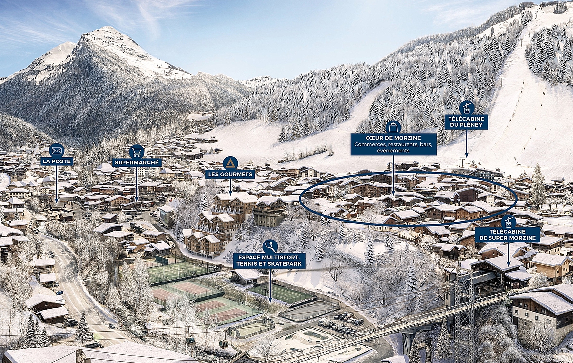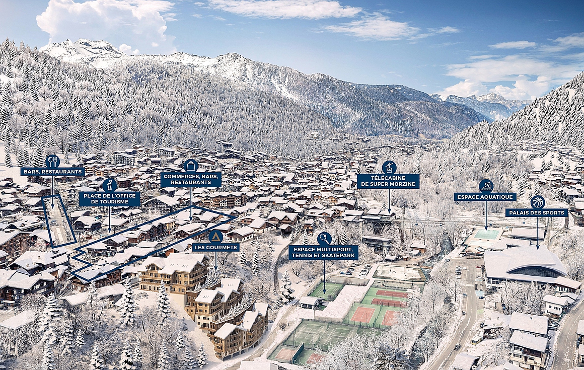 Set within the dual season resort of Morzine, that provides seamless access into the huge Portes du Soleil ski area, this brand new project of 1 - 5 bedroom apartments in an ultra central location where everything can be reached on foot, from the residence the Super Morzine gondola is just 200m away, while the Pleney slopes can be found only 400m away and the future direct gondola to Avoriaz will be perfectly placed just 50m from the residemce. The 2 bedroom (1 double + cabine) apartments will enjoy an interior surface of 38 - 55m2 and private terraces totalling 6 - 22m2.