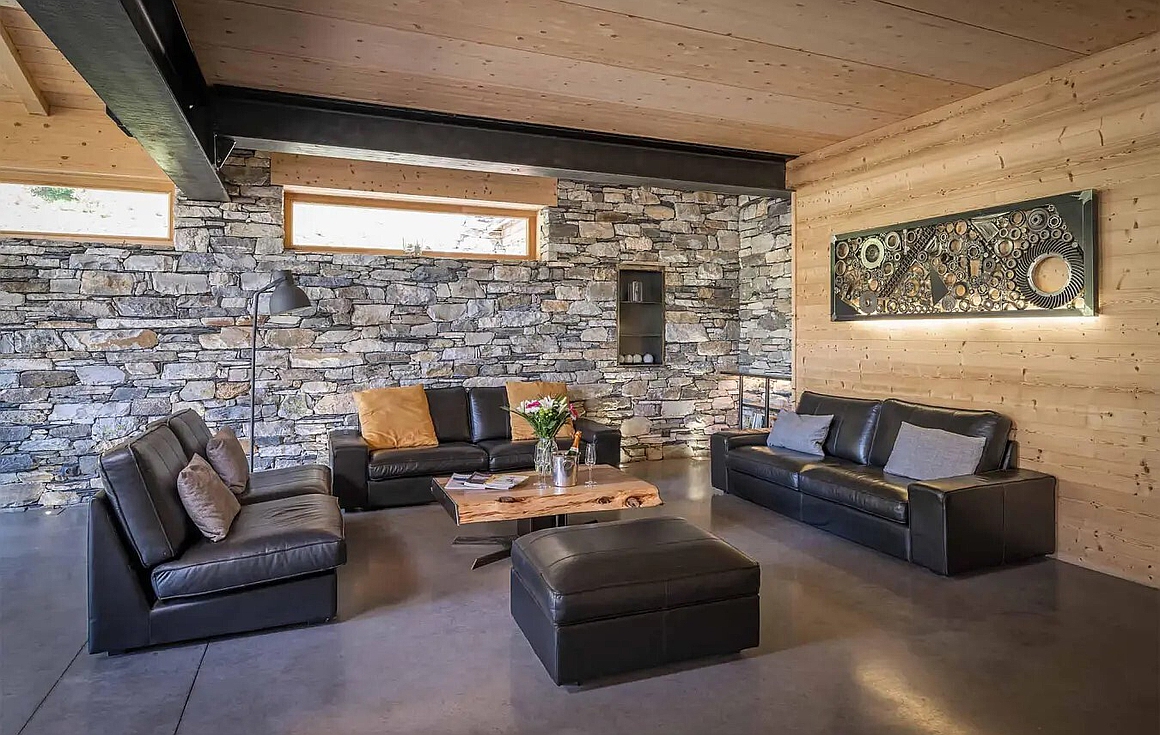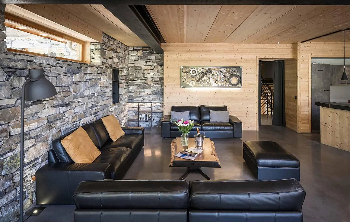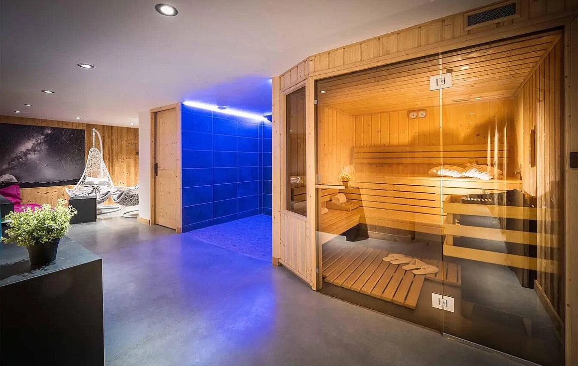 The main chalet spans four levels and is served by an elevator, featuring 7 en-suite bedrooms, a luminous 120m2 living area with a fireplace, and direct access to a vast 150 sqm terrace and private garden. The wellness area—complete with sauna, massage room and shower—invites restorative après-ski moments. The second chalet offers further sleeping capacity and shares access to the relaxation area and terrace, while a third self-contained apartment provides an ideal staff residence or flexible guest quarters.