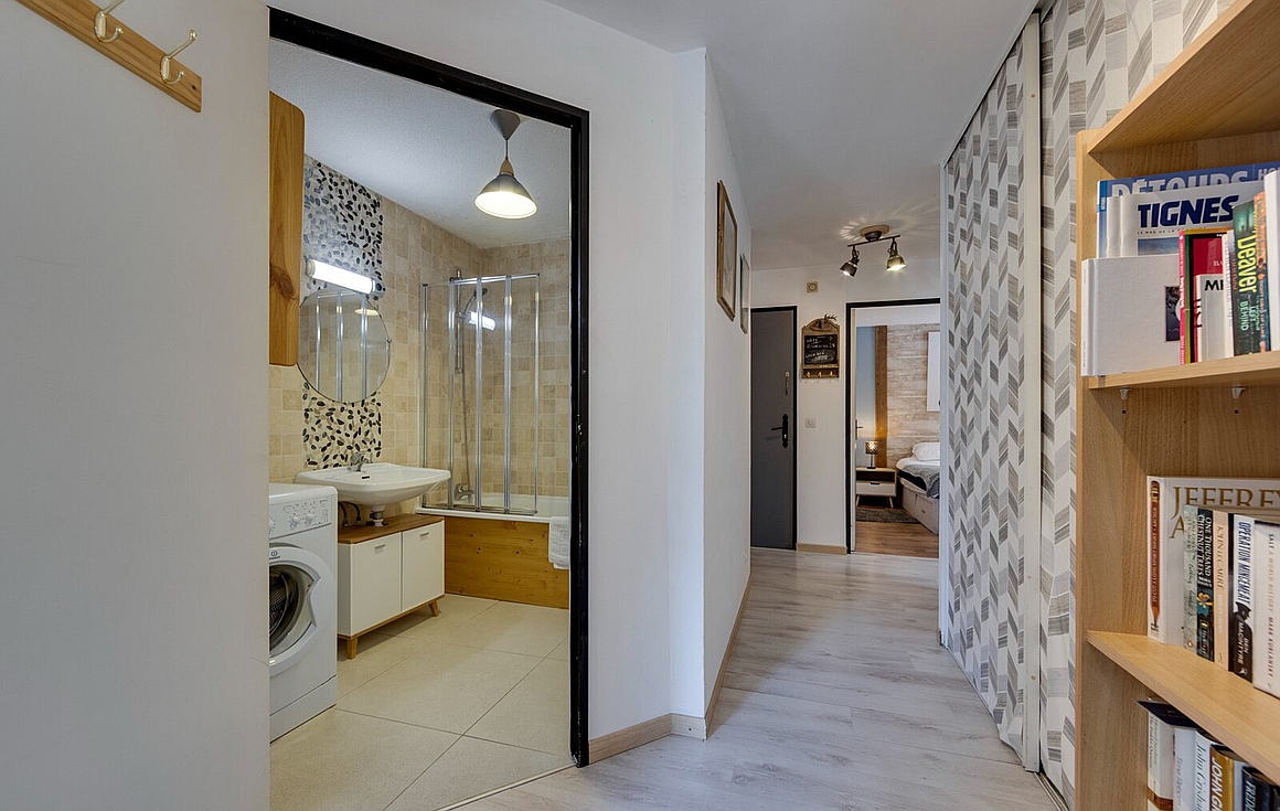 A highlight of the property is its private balcony, where you can take in panoramic views of the valley and enjoy peaceful moments year-round. Additional features include a spacious 27 sqm cellar, ideal for seasonal gear, and a private garage—a valuable asset in a ski resort setting. Whether you're searching for a holiday home or rental investment, this is an exceptional opportunity to own a stylish and low-maintenance alpine residence in one of the most charming corners of Tignes.