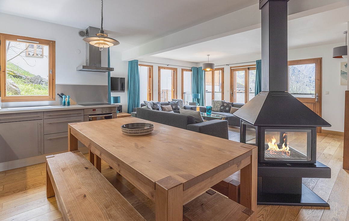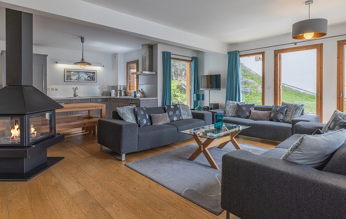 - Spacious open-plan living with 360 degree fireplace