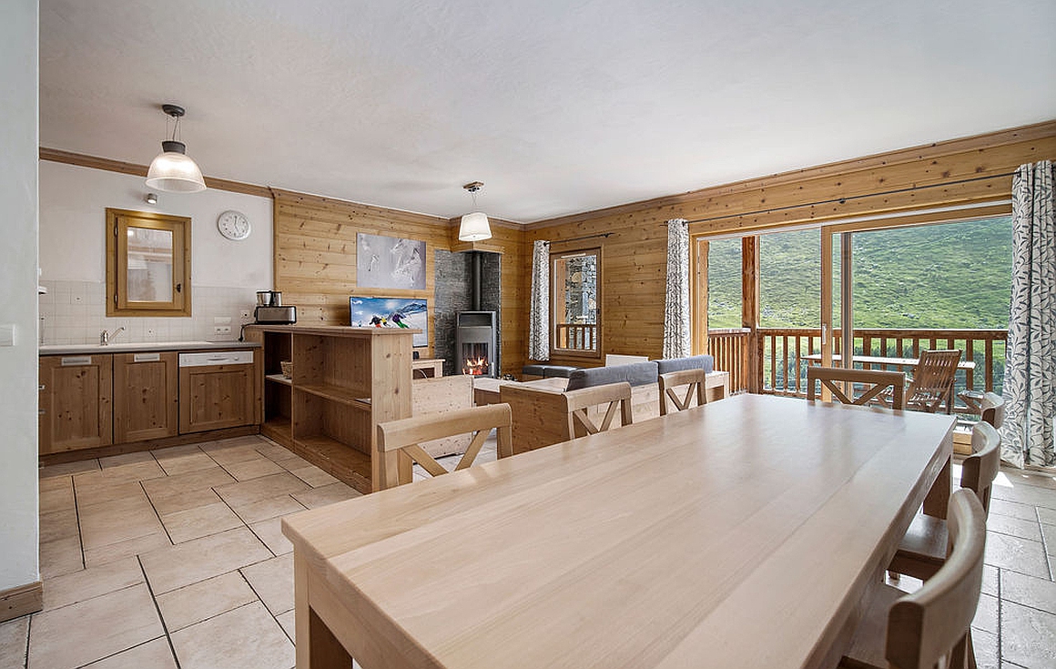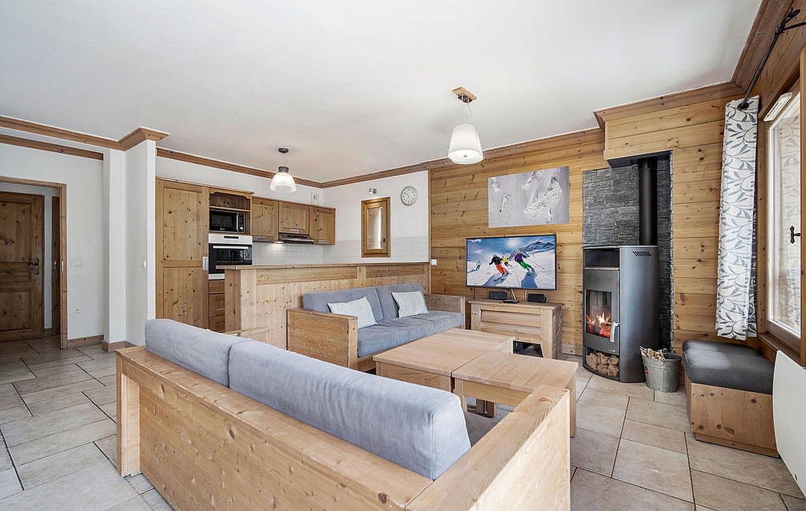 Ideally positioned at the foot of the slopes for a true ski in and out experience in the heart of Les Menuires, this beautifully appointed 99m2 apartment offers 4 double bedrooms and a west-facing terrace with stunning mountain views. Thoughtfully designed to welcome up to 8 guests, the home enjoys exceptional natural light, a spacious open-plan living area with a wood-burning stove, and an inviting kitchen and dining space perfect for après-ski moments with family or friends.