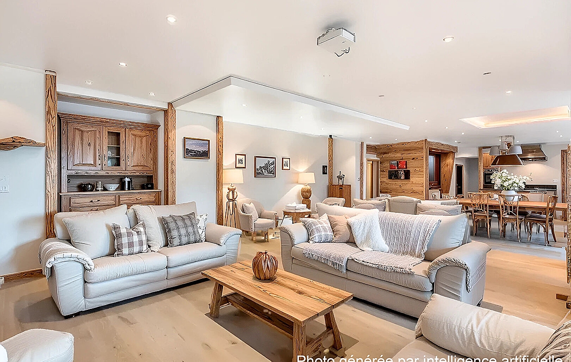 Nestled in the sought-after Espace Diamant ski area, this 267.7 m2 duplex apartment in Les Saisies offers the perfect blend of comfort and luxury. With a southern exposure, this property is bathed in natural light, highlighting its stunning living spaces and breathtaking mountain views. The apartment is part of an exclusive residence consisting of five beautifully designed stone and wood chalets, offering high-end amenities such as an indoor pool, sauna, fitness room, and concierge service.