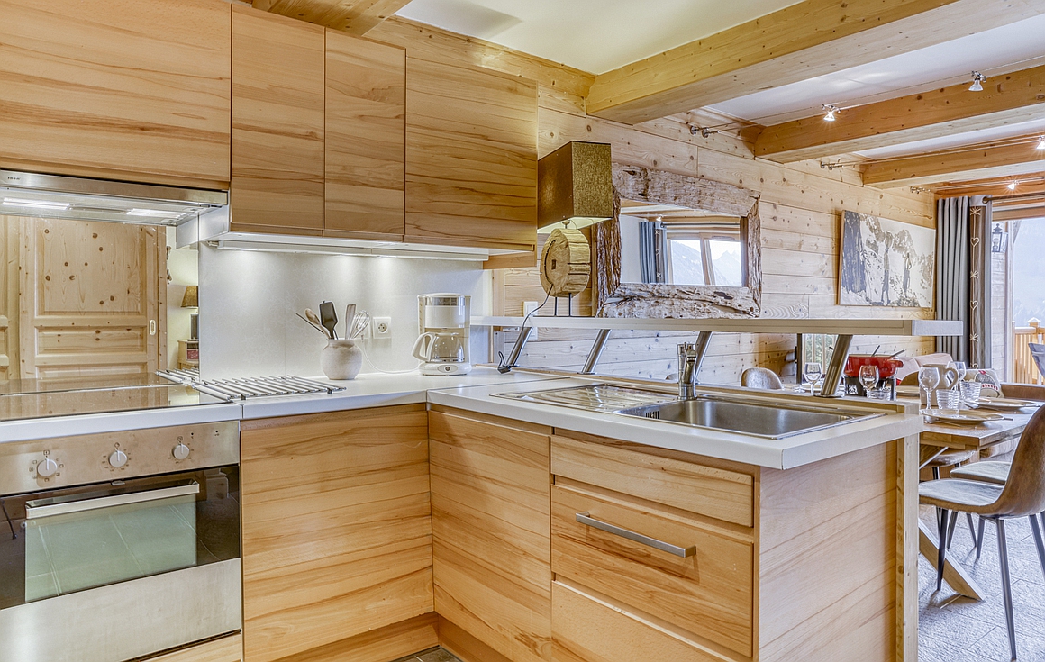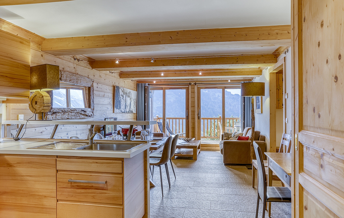 The spacious living area, complete with a modern open-plan kitchen, invites you to relax and unwind with family and friends. The large terrace is an excellent place to enjoy stunning mountain views after a day of skiing. The apartment also includes four beautifully appointed bedrooms, with ample space and comfort, and two functional bathrooms for convenience.