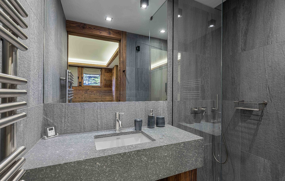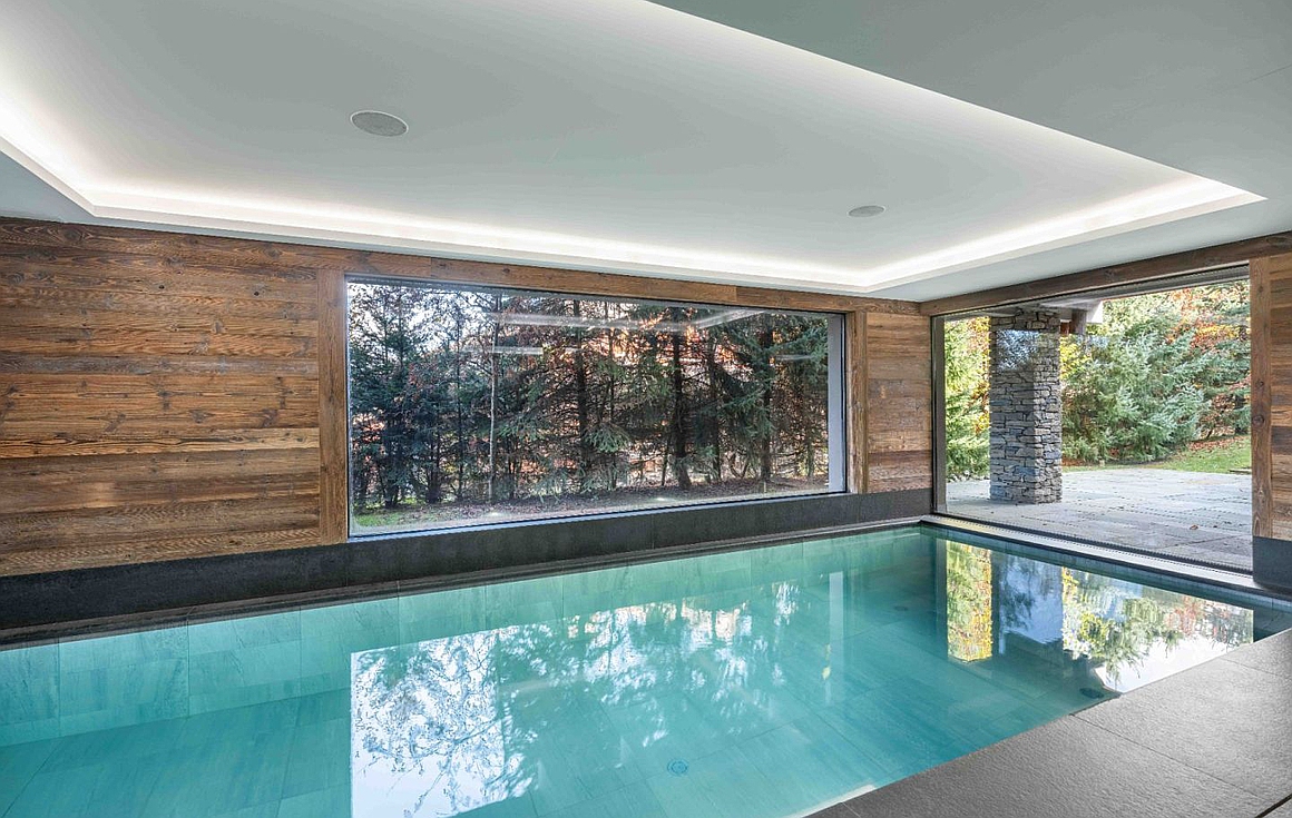 The living spaces open onto a generous terrace where the majesty of Mont Blanc unfolds before you—an idyllic spot for tranquil mornings and sunset gatherings. A rare highlight of this chalet is its dedicated wellness floor, complete with an indoor swimming pool, sauna, hammam, fitness room, and wine cellar, offering an exclusive sanctuary for relaxation and rejuvenation.