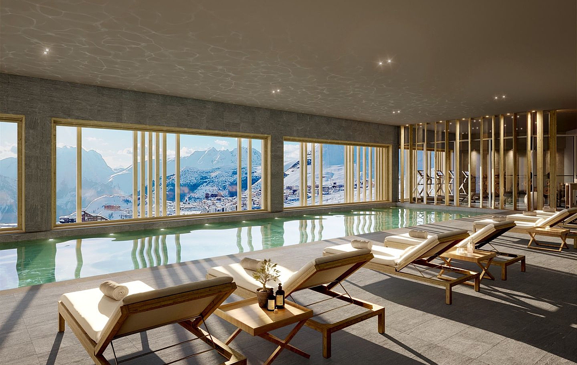 Beyond the apartment itself, Phoenix 3 elevates the mountain lifestyle with a shared wellness and fitness area. Enjoy moments of true relaxation in the swimming pool, sauna, hammam, or fitness room, all while taking in views of the surrounding peaks. A ski locker, cellar, and two garages complete this property.