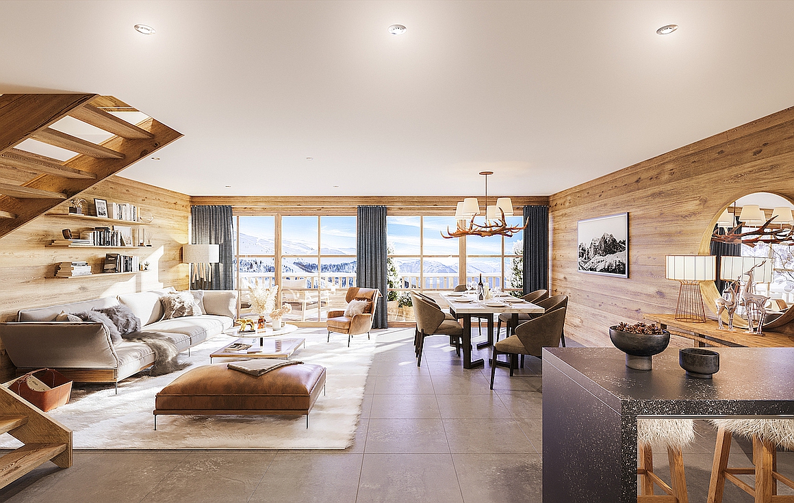 With the resort just 12km from the motorway making it easy to access and being built by a promoter with a proven track record of building in the mountains, the contemporary but yet traditional architecture of the residence that comes with a hint of Savoyard, will be built to RT2012 standards and will incorporate high standing materials including larch wood and local stone on the exterior as well as spacious wooden balconies.