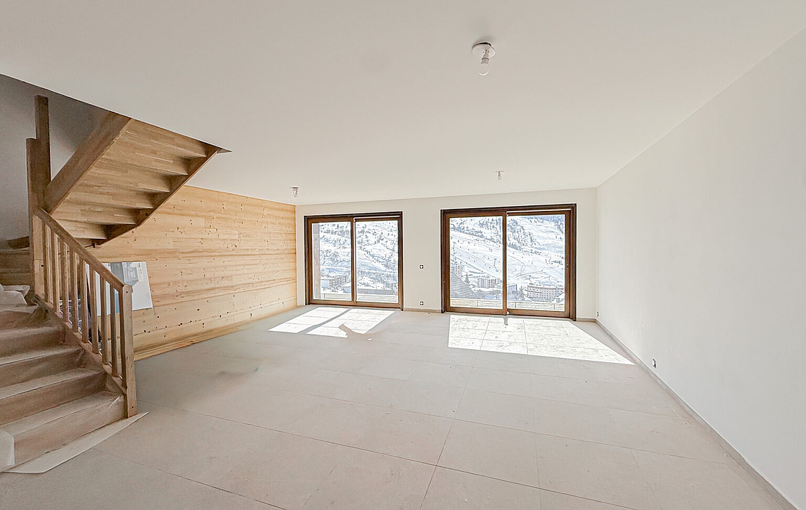 In a fantastic location for both skiers and road cyclists alike, this brand new development of just 10 intimate south facing apartments in a delightful new chalet residence can be found literally 90m from the ski slopes of the 160km Valmorel - St Francois ski domain as well as being moments from the famous Col de Madelaine tackled by the Tour de France regularly including 2025, making this an ideal winter and summer destination. The 3 double bedroom duplex, penthouse, apartment (No 9) with stunning views will enjoy a habitable surface of 109m2 plus a further 14m2 under 1.8m and balcony of 10m2.