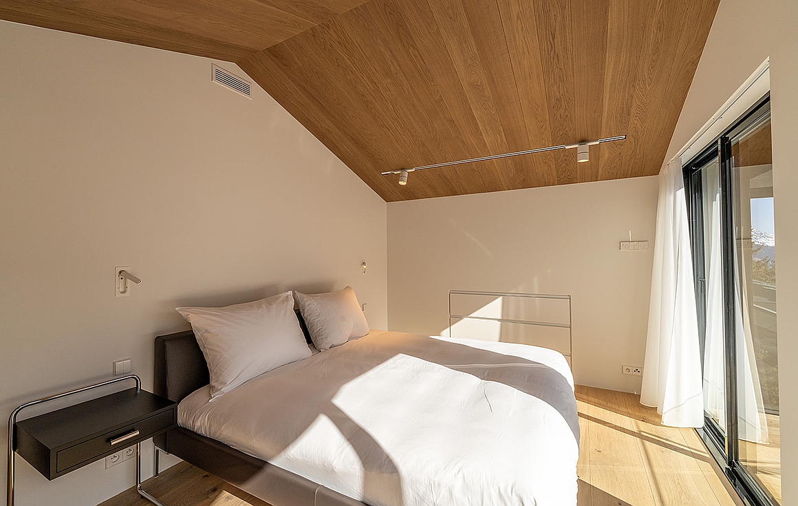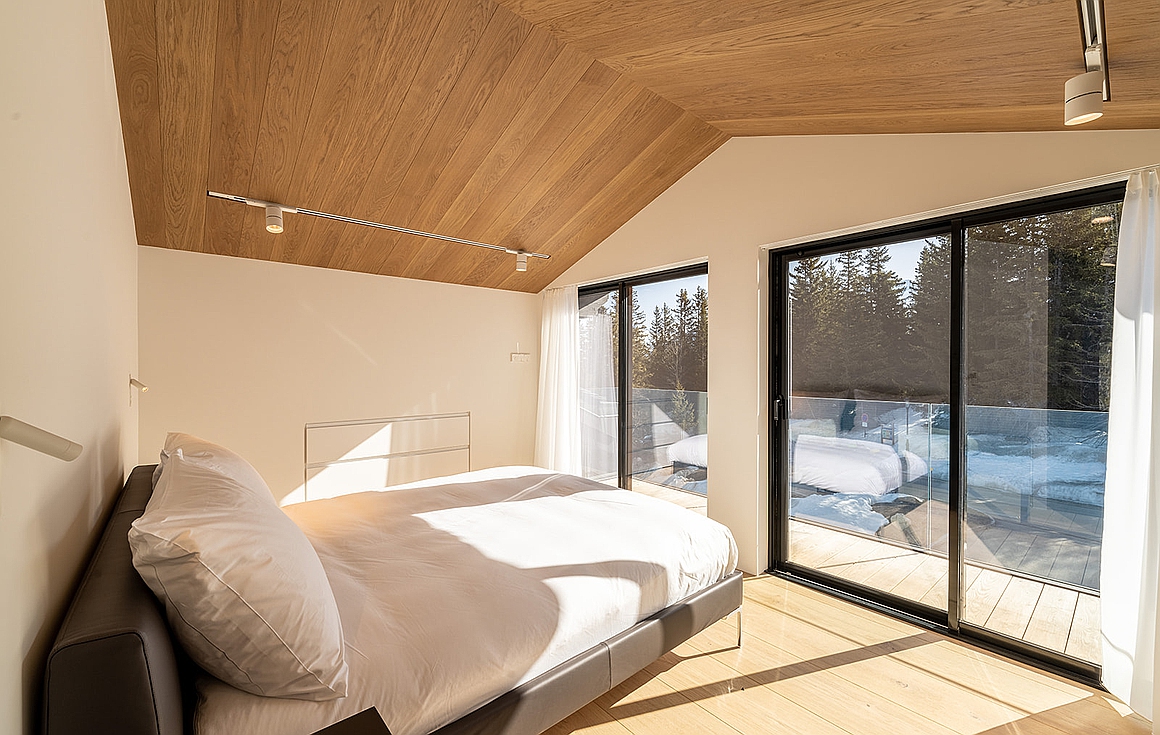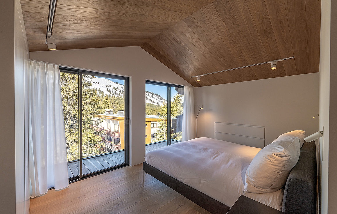 Designed in the spirit of a contemporary loft, the apartment sits within a quiet residence that has been completely renovated. Expansive openings on all sides flood the interiors with natural light and reveal 360° panoramic mountain views, creating a seamless connection between indoors and outdoors. The living space is particularly impressive, with generous ceiling height and a vast open-plan layout where the kitchen, dining, and lounge areas come together as a natural place for entertaining and sharing memorable moments.