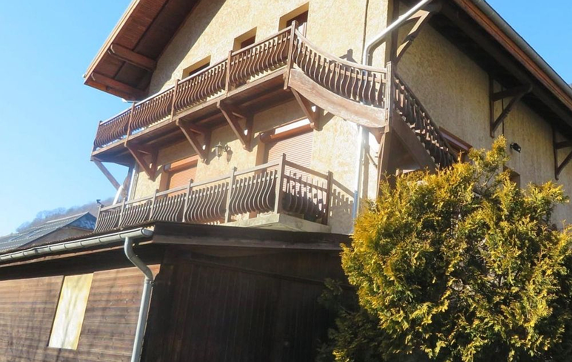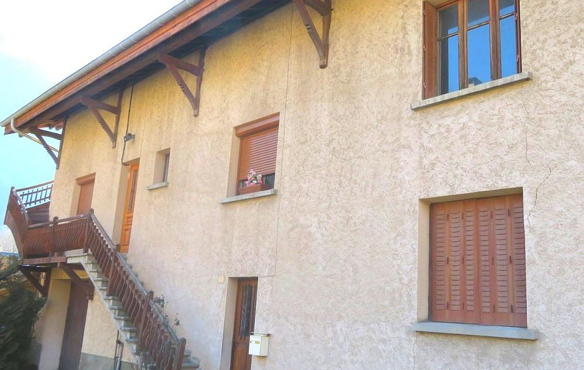 Spread over three levels, the property includes a 60 sqm one-bedroom apartment requiring full renovation, an 80 sqm three-bedroom apartment with terrace to be modernised, and an attic level of around 135 sqm featuring a large balcony, offering exceptional conversion potential. Whether reimagined as a spacious family home, a multi-unit rental investment, or a mixed-use Alpine project, the volumes and layout provide remarkable flexibility.