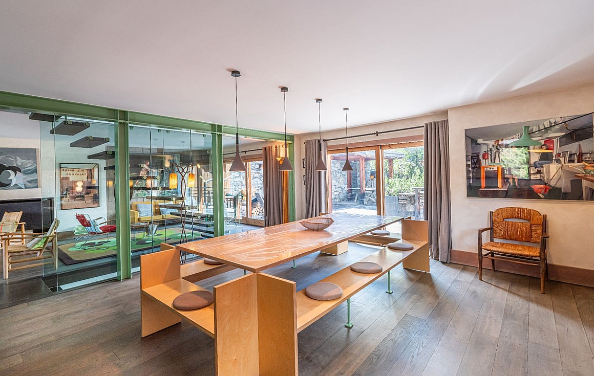 Discover this 226.7 sqm chalet in the heart of Méribel, offering an unparalleled mountain lifestyle. Ideally located near the slopes, this 6-bedroom property is the perfect retreat for families or groups, accommodating up to 14 people. Renovated in 2012, it combines noble materials such as wood and stone with a unique, contemporary design. The South/West-facing orientation ensures abundant natural light and stunning views of the surrounding mountains.