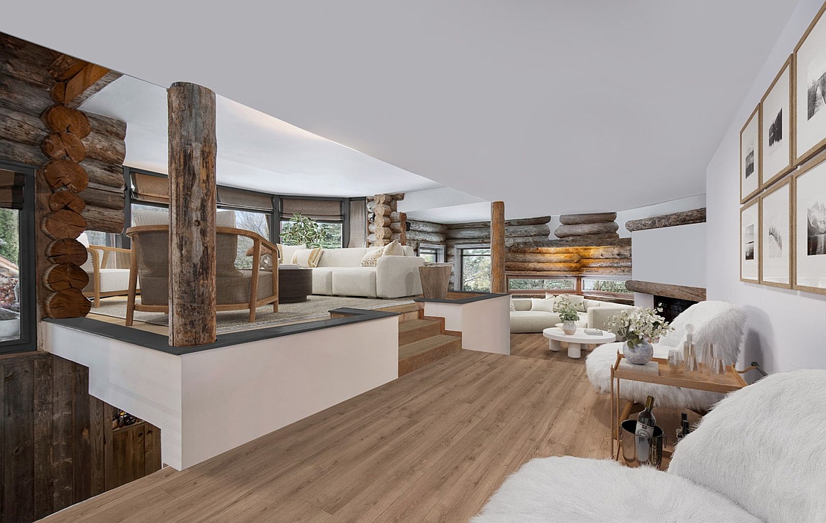 Built in traditional log style and enhanced by exceptional finishes, the chalet reveals spectacular volumes and refined alpine elegance. The impressive 123 sqm living area is bathed in natural light and opens onto a vast panoramic terrace, perfectly positioned to embrace the surrounding peaks. Five beautifully appointed bedrooms, including a luxurious master suite, ensure privacy and comfort for family and guests.