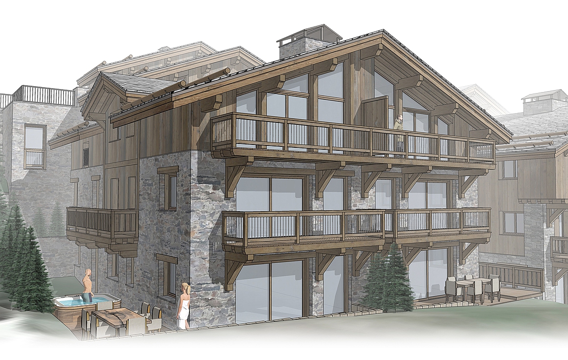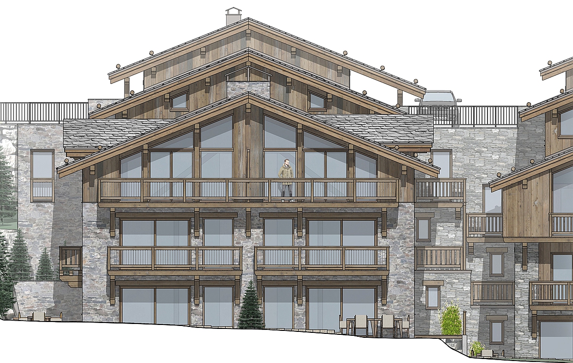 In a private area with outstanding wide open valley views, the project is being built by a local renowned developer who has been been building in St Martin de Belleville for many years. With the exterior architecture combining wood, natural stone and slate blending into its surroundings, inside contemporary finishes merge with spacious volumes to give a authentic but modern feel.